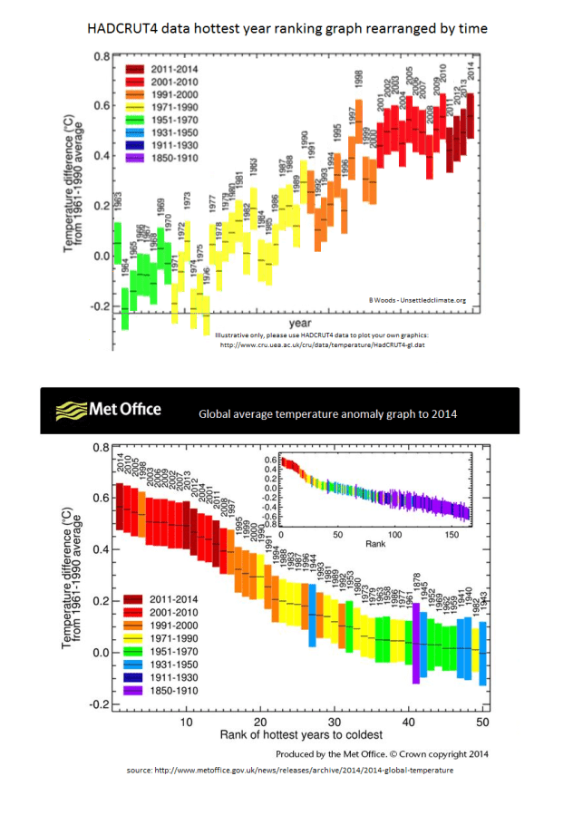 For Illustrative puproses only, wanted to rearrange HADCRUT4 ranking of hottest years graph - by TIME