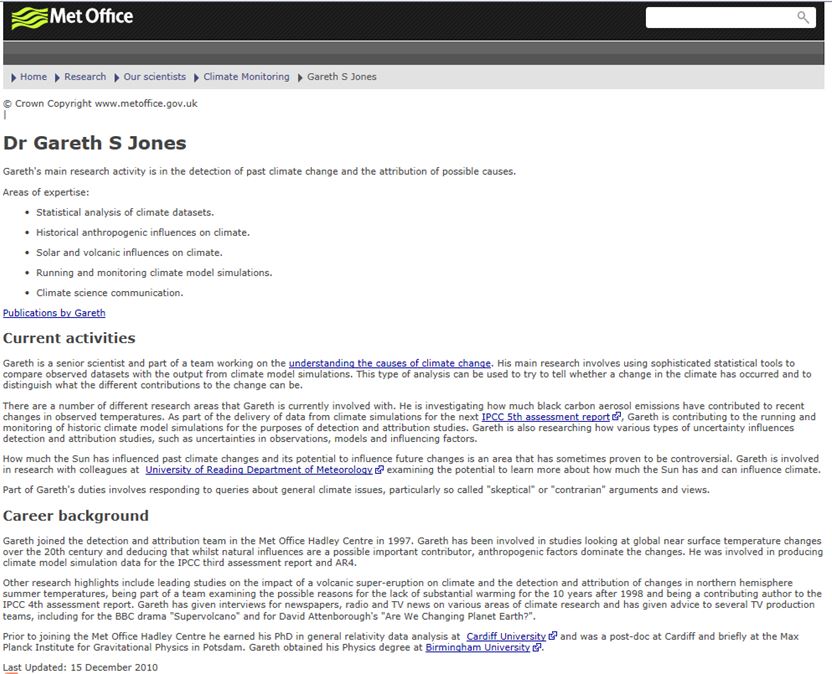 Met Office Gareth Jones bio 2010